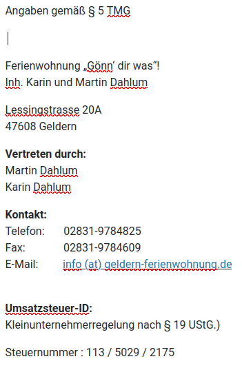 Aus Gründen der Gebäude- und Personensicherheit und Nichtbeachten der Mieterpflichten ist es dem Vermieter gestattet die Ferienwohnung jederzeit zu betreten um die störenden Umstände zu beheben.